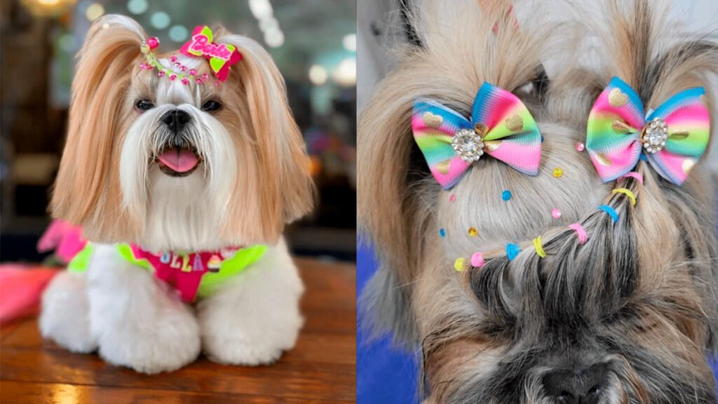 Entre os penteados mais procurados estão as tranças, que podem ser feitas de diferentes formas, desde as clássicas até as mais elaboradas, como tranças duplas ou embutidas. Adicionar acessórios coloridos, como fitas e elásticos, pode transformar um simples penteado em uma verdadeira obra de arte. Além disso, os topetes são uma escolha charmosa para raças de pelo mais volumoso, como os Shih Tzus, Poodles e Lhasa Apsos, dando um ar moderno e divertido.